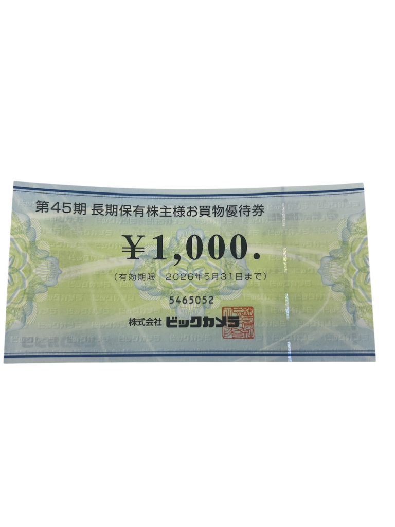 ビックカメラ 株主優待券をお買取りさせていただきました。