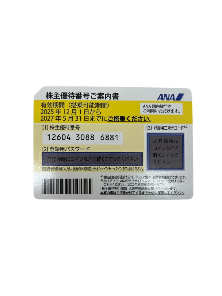ANA株主優待券のお買取りさせていただきました。