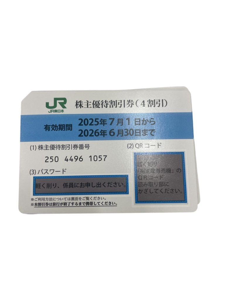 JR東日本株主優待割引券をお買取りさせていただきました。